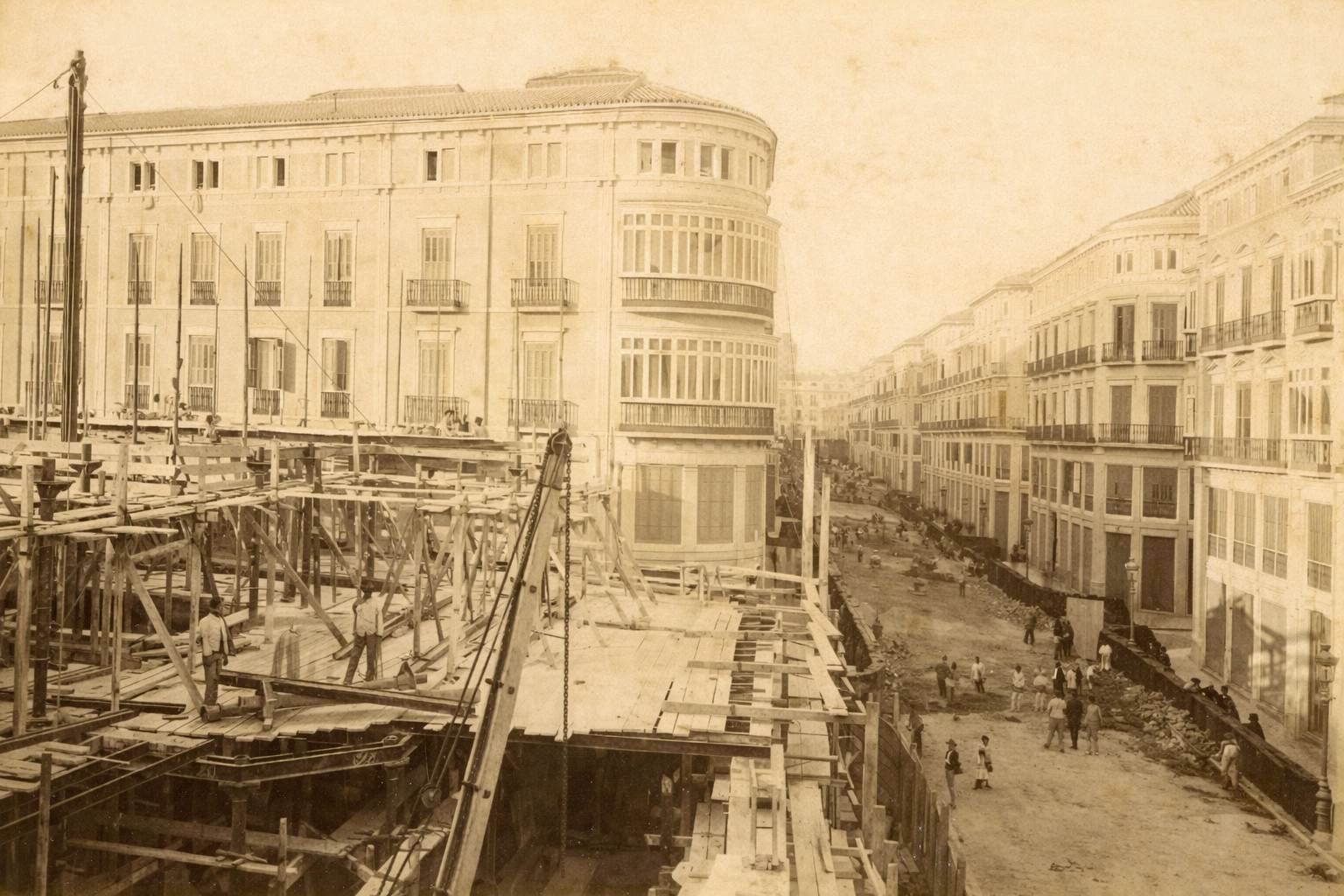 In 1880, a civic corporation was formed to carve a new, modern artery through the decaying quarter. Investors bought shares but many withdrew during economic instability. The Larios family steadily increased their participation until they controlled roughly 90% of the financing.